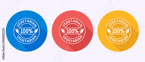 © BakiBullah, Fototapeta premium 100 percent vegetarian icon design illustration, Vegan product label badge in shadow button design
