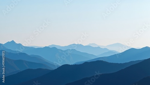 Obraz premium Perched atop a serene hill, you gaze upon majestic mountains stretching into...
