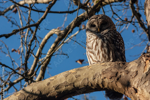© Caleb Derouin, Obraz premium Perched barred owl