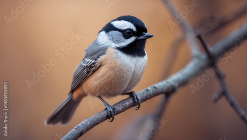 © Seyyar, Obraz premium Perched Mountain Chickadee in a lush outdoor setting