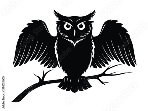 © MD. YOUSUF ALI, Fototapeta premium Perched Owl Silhouette on Twig Illustration