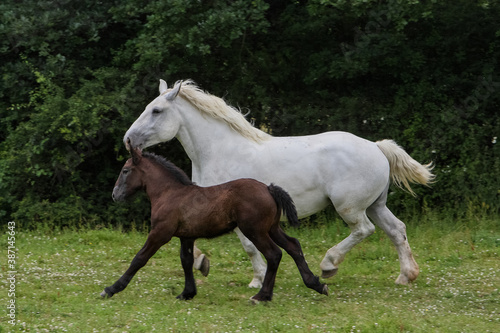 © Dominique VERNIER, Obraz premium percheronne et son poulain galopant