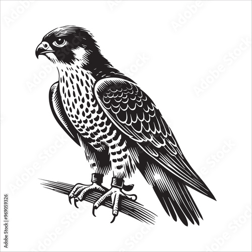 © Shineoxstock, Fototapeta premium Peregrine Falcon Silhouette Design, Peregrine Clipart Graphic, Peregrine Bird vector illustration in black and white
