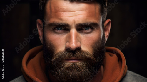 © petrrgoskov, Fototapeta premium Perfect beard Close up. Handsome bearded young man close up. beautiful well-groomed dark beard of elegant hipster male.