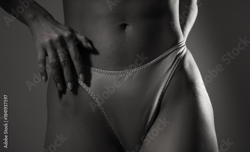 Naklejka premium Perfect body of young and beautiful woman. Sensual body. Shadow. Sensual. Diet.