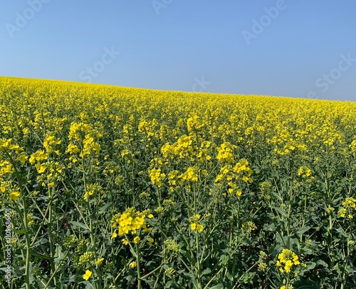 Obraz premium Perfect canola field with a bright blue sky
