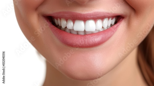 © Nikolay, Obraz premium Perfect healthy teeth smile of a woman isolated on a white background.