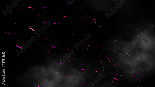 © Victor, Fototapeta premium Perfect pink fire particles embers texture. Abstract flying sparkle in smoke. Fog on isolated overlays black background. Stock illustration.