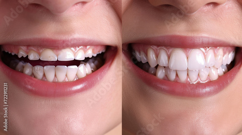 Fototapeta premium Perfect smile before and after bleaching procedure whitening of zircon arch...