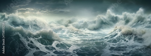 Fototapeta premium Perfect Storm Huge waves Tsunami Big waves. banner