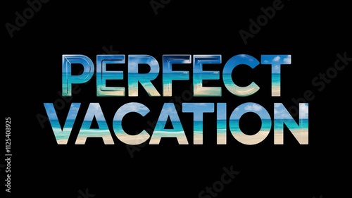 Obraz premium Perfect Vacation Text Filled with Tropical Beach and Ocean Sky Imagery
