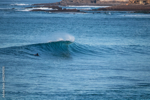 © nvphoto, Obraz premium Perfect wave breaking in a beach. Surf spot