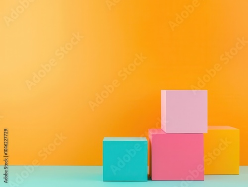 © Green Creator, Obraz premium Perfectly aligned colorful cubes in a gradient pattern, basic shapes, modern minimalism