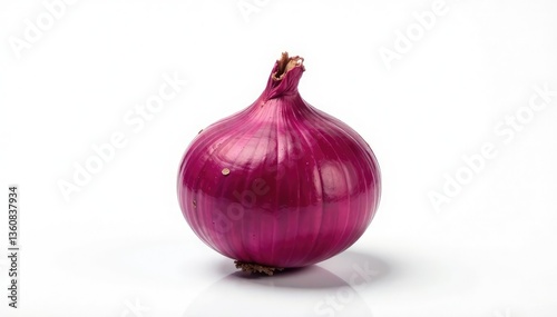 Fototapeta premium Perfectly centered red onion, sharp focus, pure white backdrop, still life,...