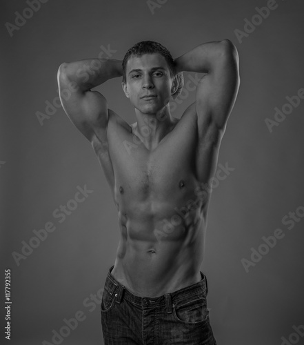 © Big City Lights, Fototapeta premium Perfectly fit shirtless young man