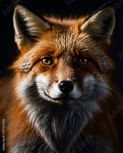 Fototapeta premium Perfectly framed professional shot of orange fox with dramatic dark background