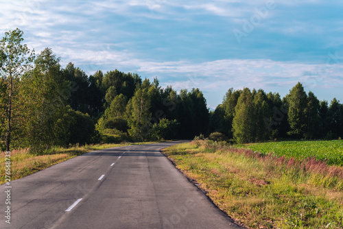 © dmitriydanilov62, Fototapeta premium Perfectly smooth asphalt road in the countryside before sunset