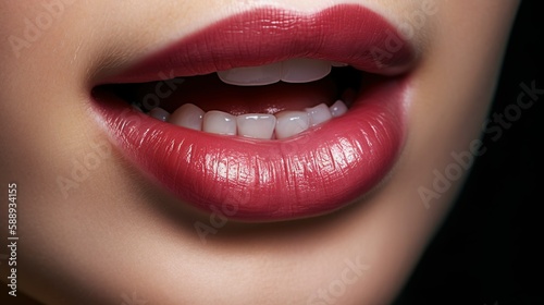 Obraz premium Perfekte natürliche Lippen-Make-up: Nahaufnahme Makrofoto mit wunderschönem...