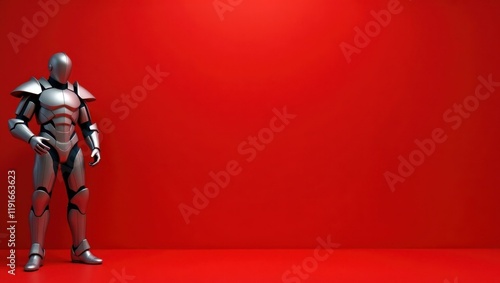 © PremiumPhoto, Naklejka premium Perfume dupe Red light panels Knee massager Hosting core Signature scent therapy Fragrantica Liquid death Diversual Thesis supplements Titan gray suit of armor on left. Silver futuristic robot standi