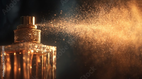 Obraz premium Perfume Spray in Golden Light / 黄金色の光に包まれる香水のミスト5