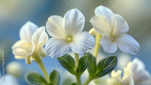 © EMDADUOL HAQUE , Fototapeta premium Periwinkle flower bloom with soft focus on white background creating a delicate and serene floral portrait