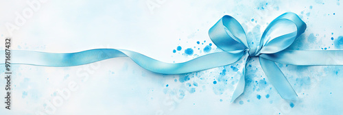 © KaihkoImages, Naklejka premium Periwinkle (Light Blue) wide banner background with Periwinkle ribbon design