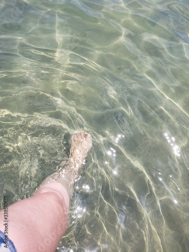 Obraz premium perna feminina em água cristalina, férias, praia, mar, nordeste