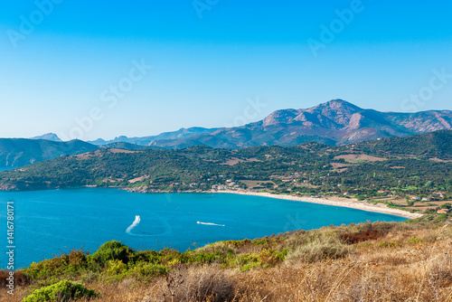 Naklejka premium Pero beach, Cargèse, Corsica, France, typical and picturesque hillside...