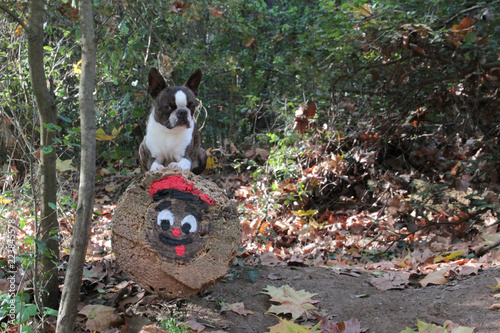 Fototapeta premium Perro tumbado sobre un Tió en el bosque