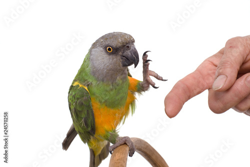 © Magalice, Fototapeta premium perroquet qui veut se percher sur la main de sa maitresse