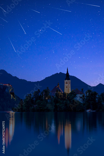 Fototapeta premium Perseid MEteor Shower over Bled Lake in Slovenia