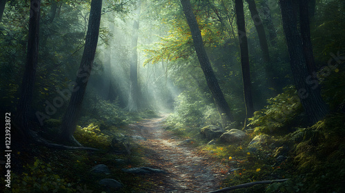 © Dale, Obraz premium Perseverance Through Nature's Obstacles: Overcoming Challenges on a Winding Forest Path
