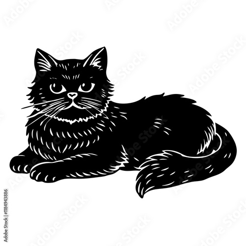 © Arnob, Obraz premium persian cat black silhouette vector with white background, Pet animal silhouette