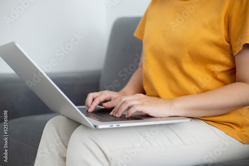 Fototapeta premium Person are using laptops, working or studying online at home. businessman using laptop work outside the office