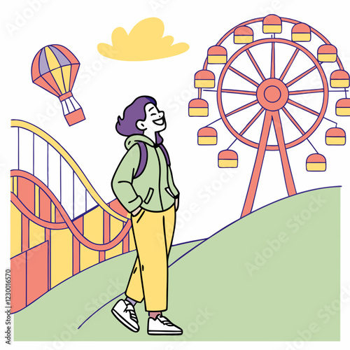 Obraz premium Person at an amusement park smiling and enjoying the view
