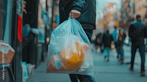 Obraz premium Person Carrying Plastic Bag on Busy City Street