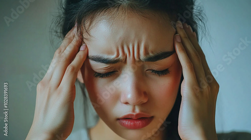 © ABX, Fototapeta premium Person holding their head looking exhausted and stressed