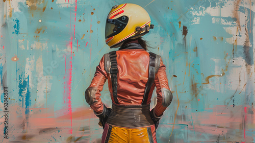 © connel_design, Obraz premium Person in racing gear against a graffiti wall.