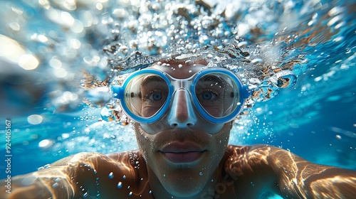 © Nuntapuk, Naklejka premium person in the pool Underwater image of athletes swimming