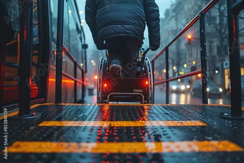 © Valentin, Fototapeta premium Person in wheelchair on city street night