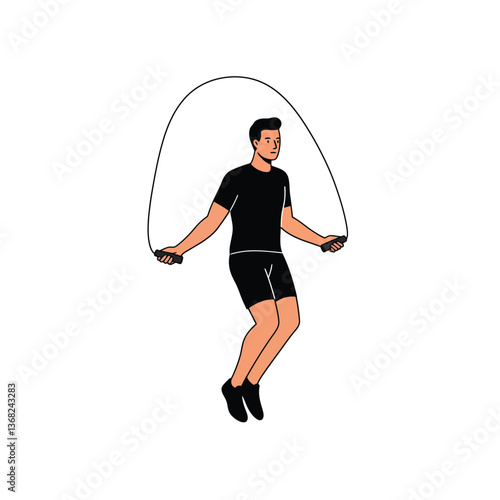 Obraz premium Person jumping rope in flat style with dynamic motion elements in vector art