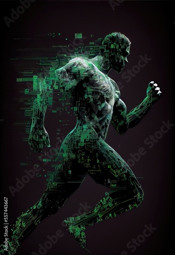 © Brian, Fototapeta premium Person made of colorful data in the virtual reality metaverse created by generative AI. Digital image made to represent futuristic technologies.