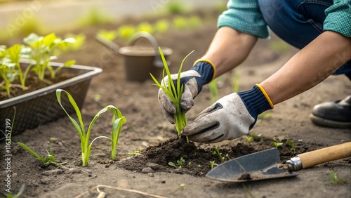 © Nataliya Selyutina, Fototapeta premium person planting a seedling
