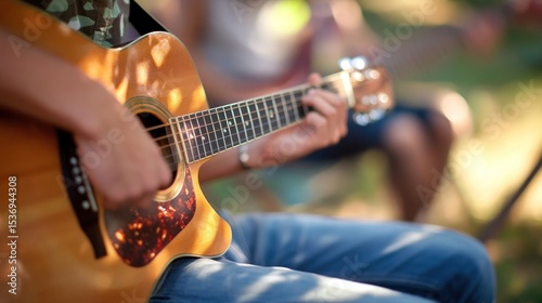 © riztasof, Fototapeta premium Person playing acoustic guitar outdoors