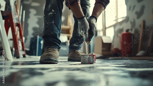 © ArpPSIqee, Fototapeta premium Person Preparing Paint for Home Renovation