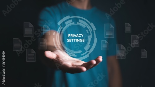 © MediaStockAI, Fototapeta premium Person's hand displays a privacy settings interface.