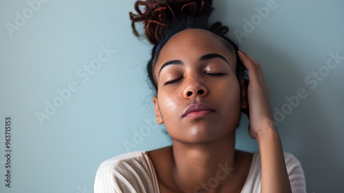 Fototapeta premium Person staring at distorted reflection in mirror, feeling overwhelmed by body image insecurities and struggles.