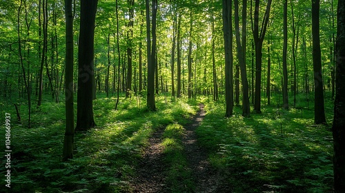 © Natcharat, Obraz premium Person taking a therapeutic walk in the forest, calm and reflective