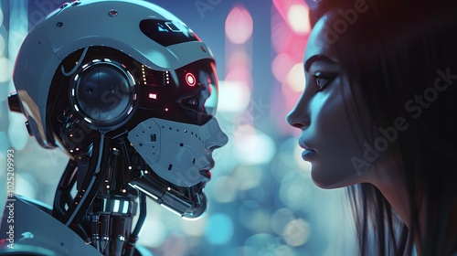 © bvbflo1, Fototapeta premium person talking with robotic ai.futuristic technology