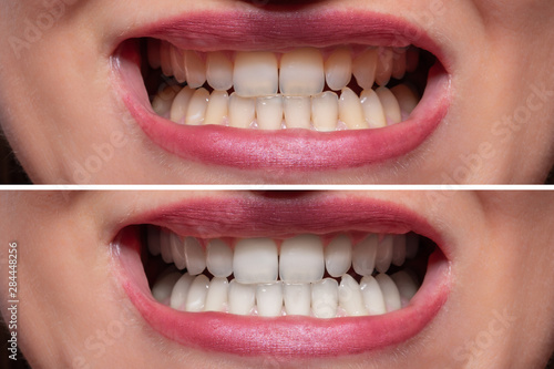 © Andrey Popov, Fototapeta premium Person Teeth Before And After Whitening
